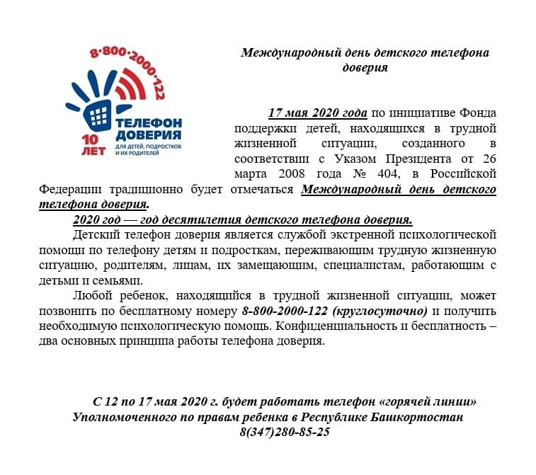 Международный день детского телефона доверия